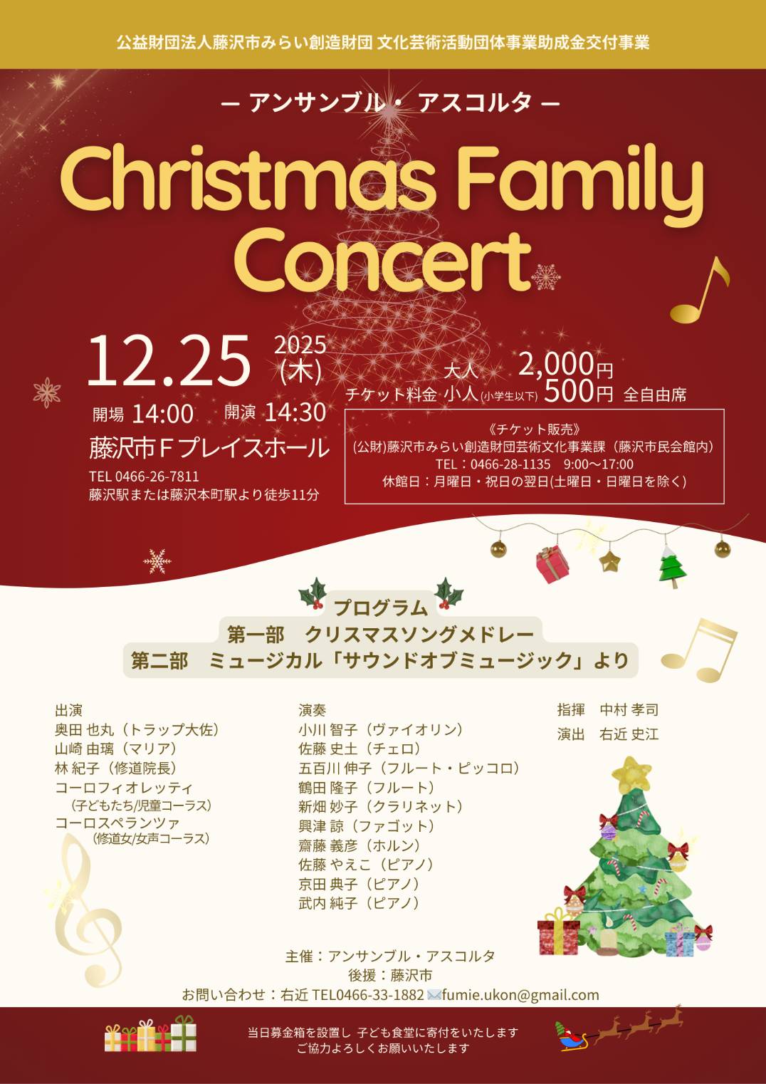 🎄Xmasコンサート 2025 11/17 ブログ 2025年11月17日 目次2025年12月25日 きたる12月25日Fプレイスホールにてクリスマスファミリーコンサートを開催します。 ブログ アンサンブル 関連記事関連する記事はまだ見つかりませんでした。